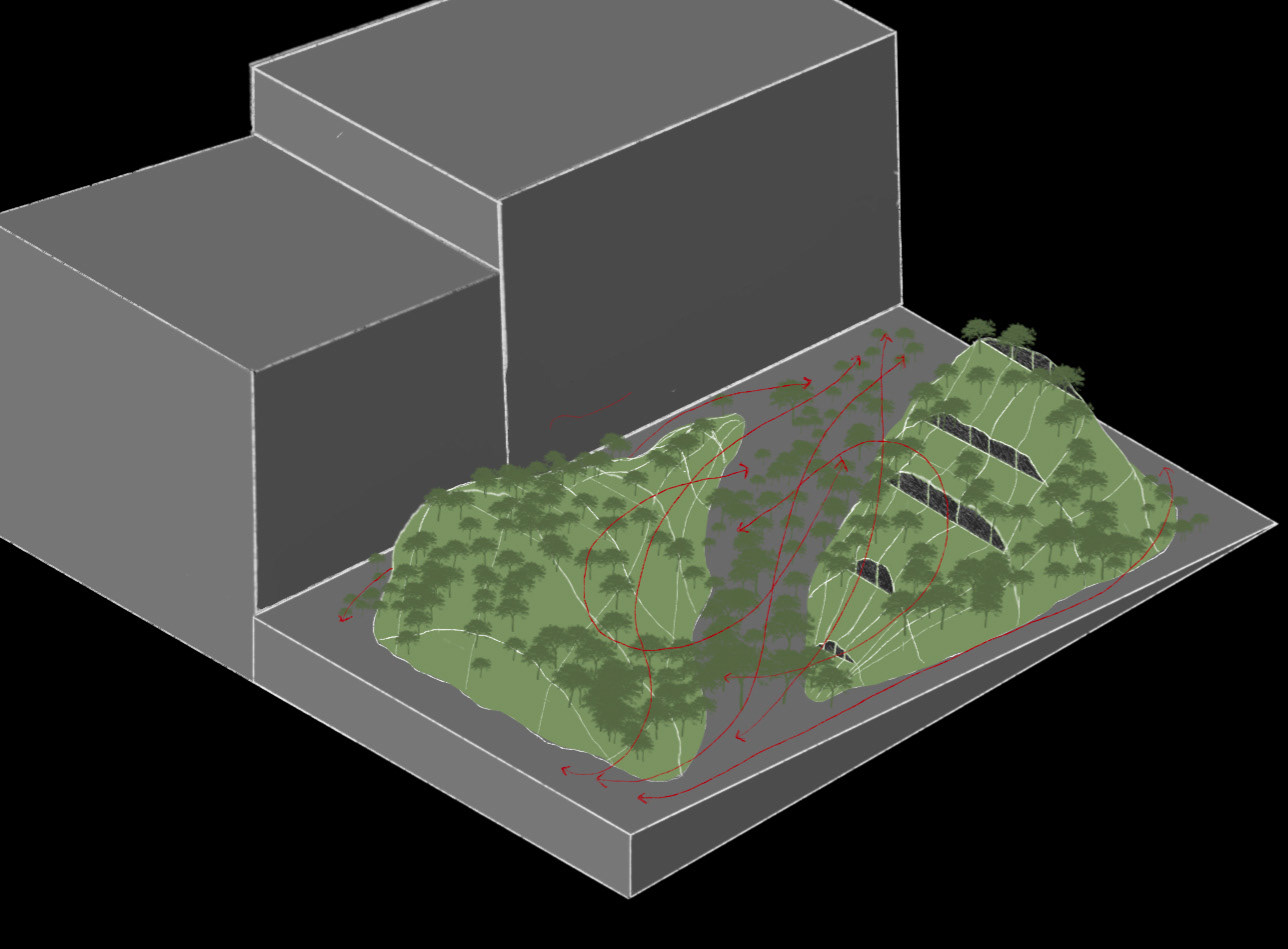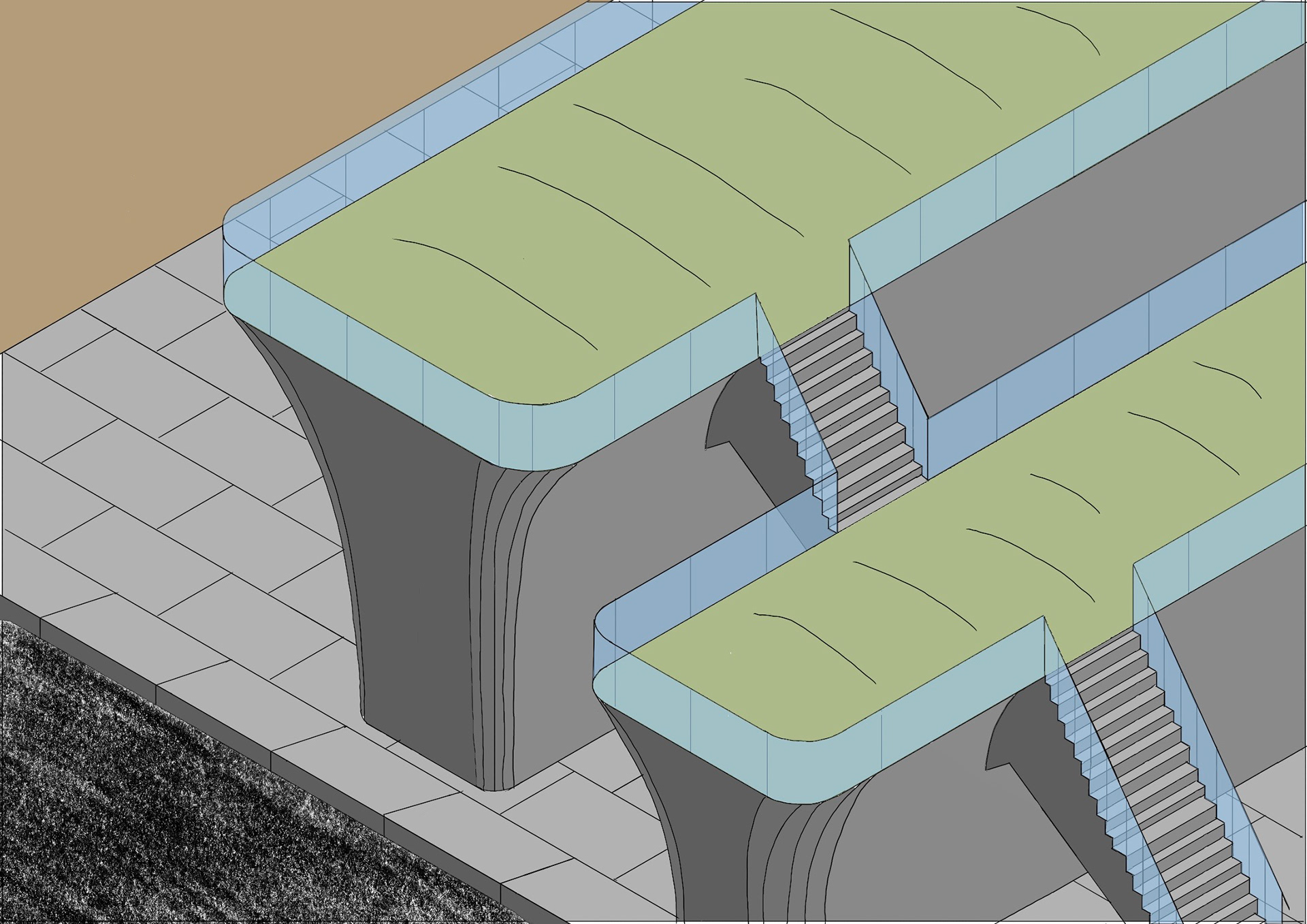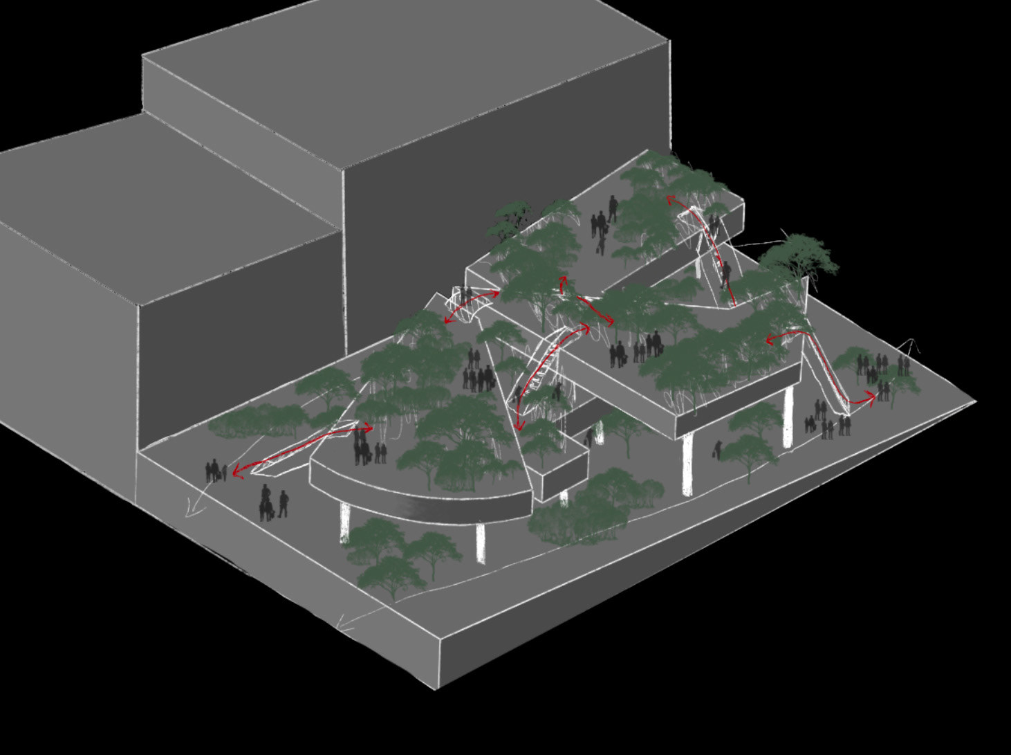 A reimagining of Martin Place, into a landscape that attracts loitering. Drawn and conceived from Aotearoa (New Zealand) during Covid-19.